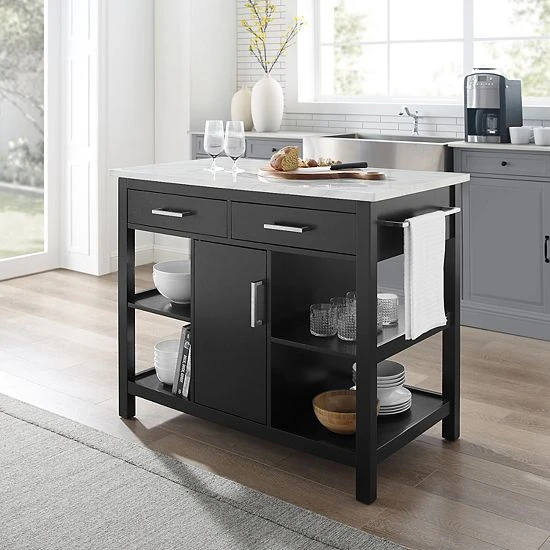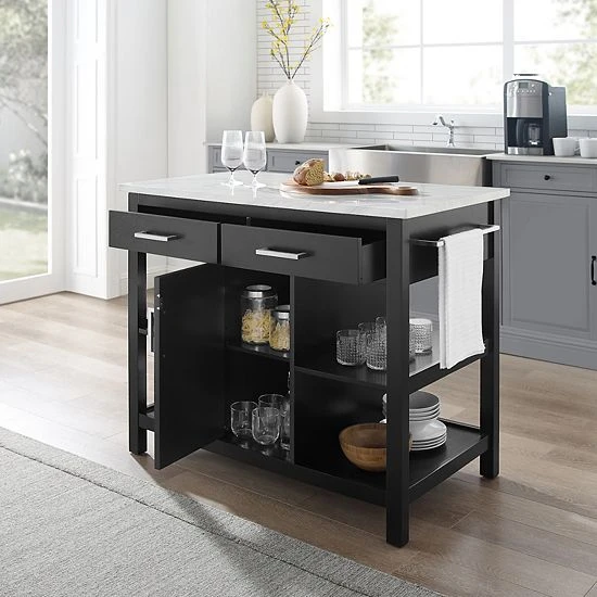 Add a new element of style to your kitchen or dining space with this Crosley Audrey Faux-Marble Top Kitchen Island.