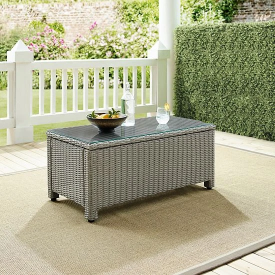 Create a backyard oasis for relaxation or entertainment with this Crosley Bradenton wicker coffee table.