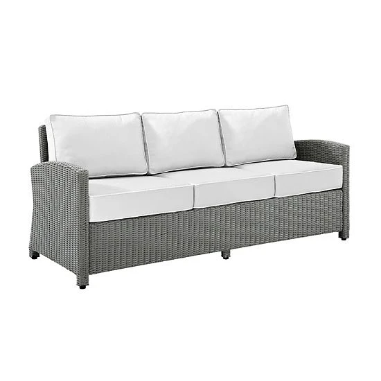 Entertain outdoors with the help of this Crosley Bradenton Sunbrella Wicker Couch.
