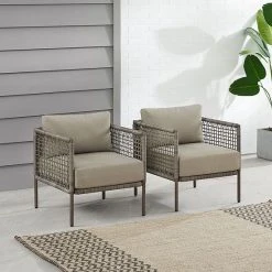 Create an inviting outdoor space for entertaining or relaxing with this Crosley Cali Bay Outdoor Wicker Arm Chair Set.