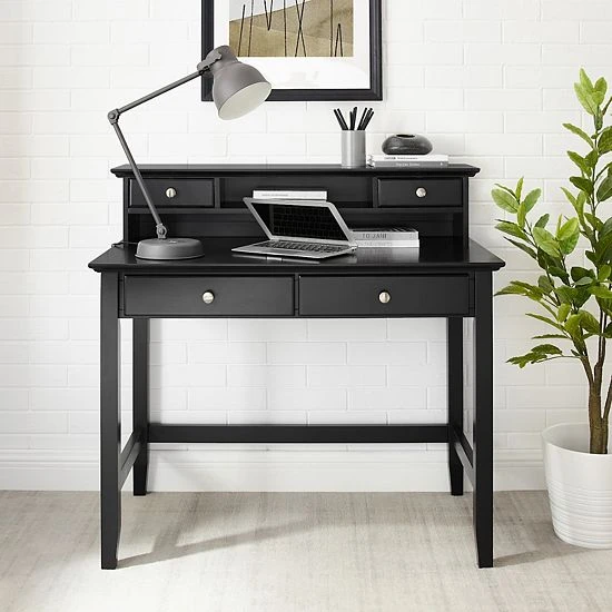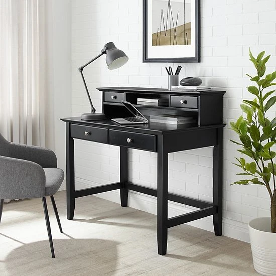 Traditional and sleek home design is easy with the addition of this Crosley Campbell desk and hutch set.