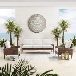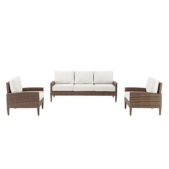 Keep your outdoor space looking stylish with this Crosley Capella Patio Wicker Couch & Arm Chair 3-piece Set.