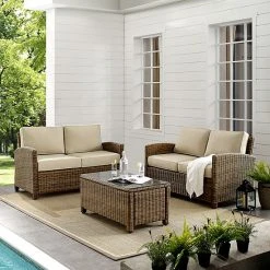Add the final touches to your backyard experience with this Crosley Furniture Bradenton 3 piece outdoor loveseat wicker seating set with navy cushions.