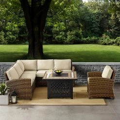 This Crosley Furniture Bradenton 5-piece outdoor wicker seating set with sand cushions is the perfect addition to your outside seating.