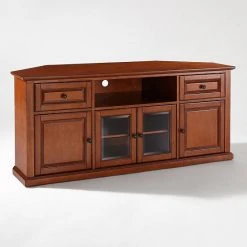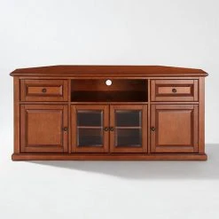 - Adjustable shelves provide room for electronics or decor.