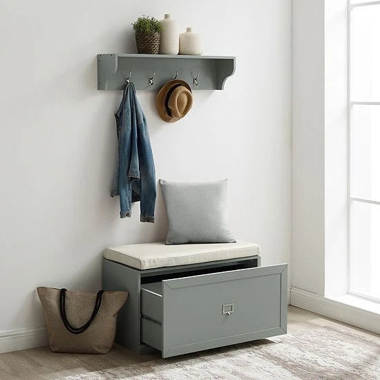 You will love the minimalistic, farmhouse design of this Crosley Harper entryway 2-piece set.