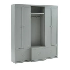 - Three double hooks, adjustable/removable shelving and a full-extension drawer per closet