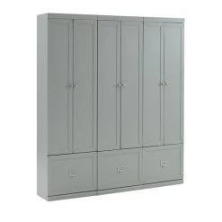 - Three double hooks, adjustable/removable shelving and a full-extension drawer per closet