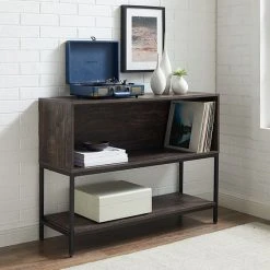 Feature your favorite trinkets and records with this Crosley Jacobsen 3-tier storage console.