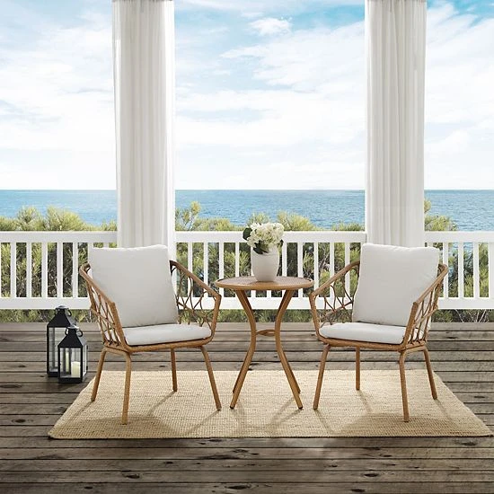 Create an inviting outdoor space for entertaining or relaxing with this Crosley Juniper Indoor / Outdoor Wicker Bistro Set.