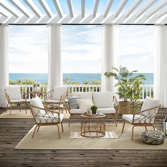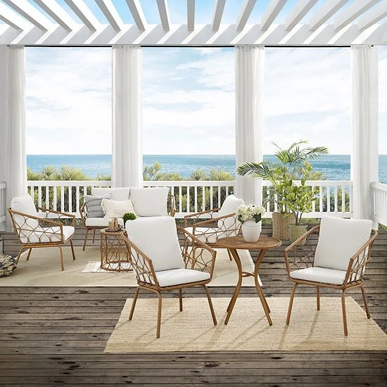 This Crosley Juniper Patio Wicker Conversation & Bistro 7-piece Set is just what you need for your outdoor space.