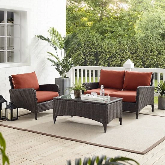 Turn your outdoor space into an oasis for relaxation or entertainment with this Crosley Kiawah 3-Piece Outdoor Wicker Conversation Set.