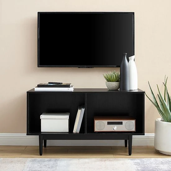Upgrade your modern living space with this Crosley Liam console cabinet.