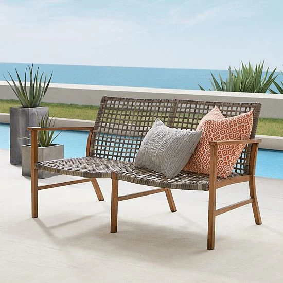 Create an inviting outdoor space for entertaining or relaxing with this Crosley Ridley Outdoor Wicker and Metal Loveseat.