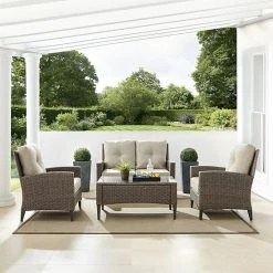 Turn your outdoor space into an inviting oasis with this Crosley Rockport wicker high-back conversation set.