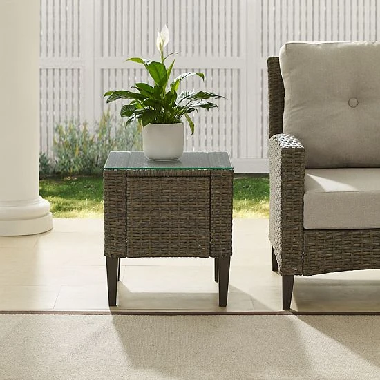 Create an inviting outdoor space for entertaining or relaxing with this Crosley Rockport Outdoor Wicker Side Table