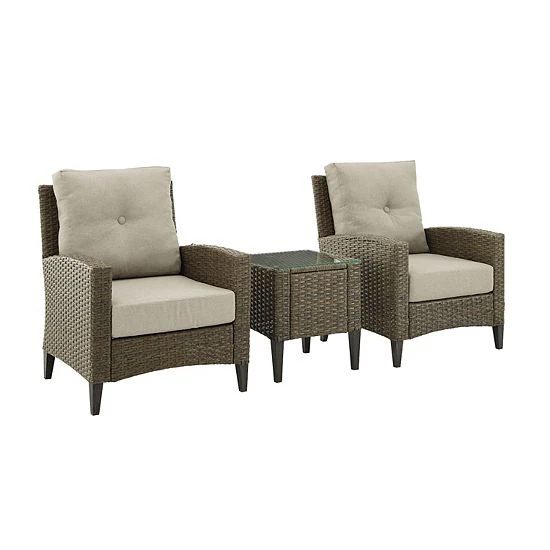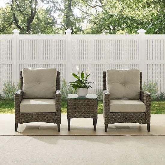 This Crosley Rockport Wicker Patio Arm Chair & End Table 3-piece Set is just what you need for your outdoor space.