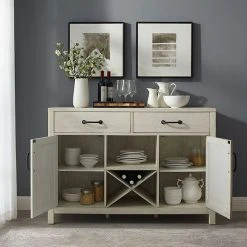 - Sideboard easily converts to an entertainment console with perforated holes on the back for cord management
