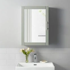 You will love the clean and minimalistic design of this Crosley Savannah mirrored wall cabinet.