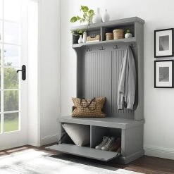 Enhance your entryway with this Crosley Seaside hall tree bench that offers plenty of space for storage.