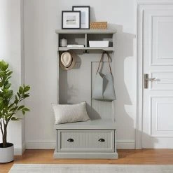 Update your entryway with this modern Crosley Shoreline hall tree storage bench.