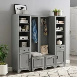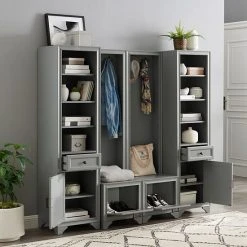 Optimal storage and traditional farmhouse style is easy with this Crosley Tara entryway 4-piece set.