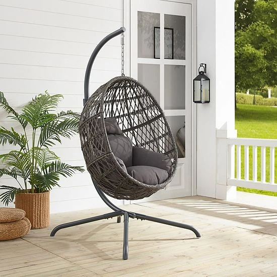 This Crosley Tess Indoor / Outdoor Patio Wicker Hanging Egg Chair is just what you need for your outdoor space.